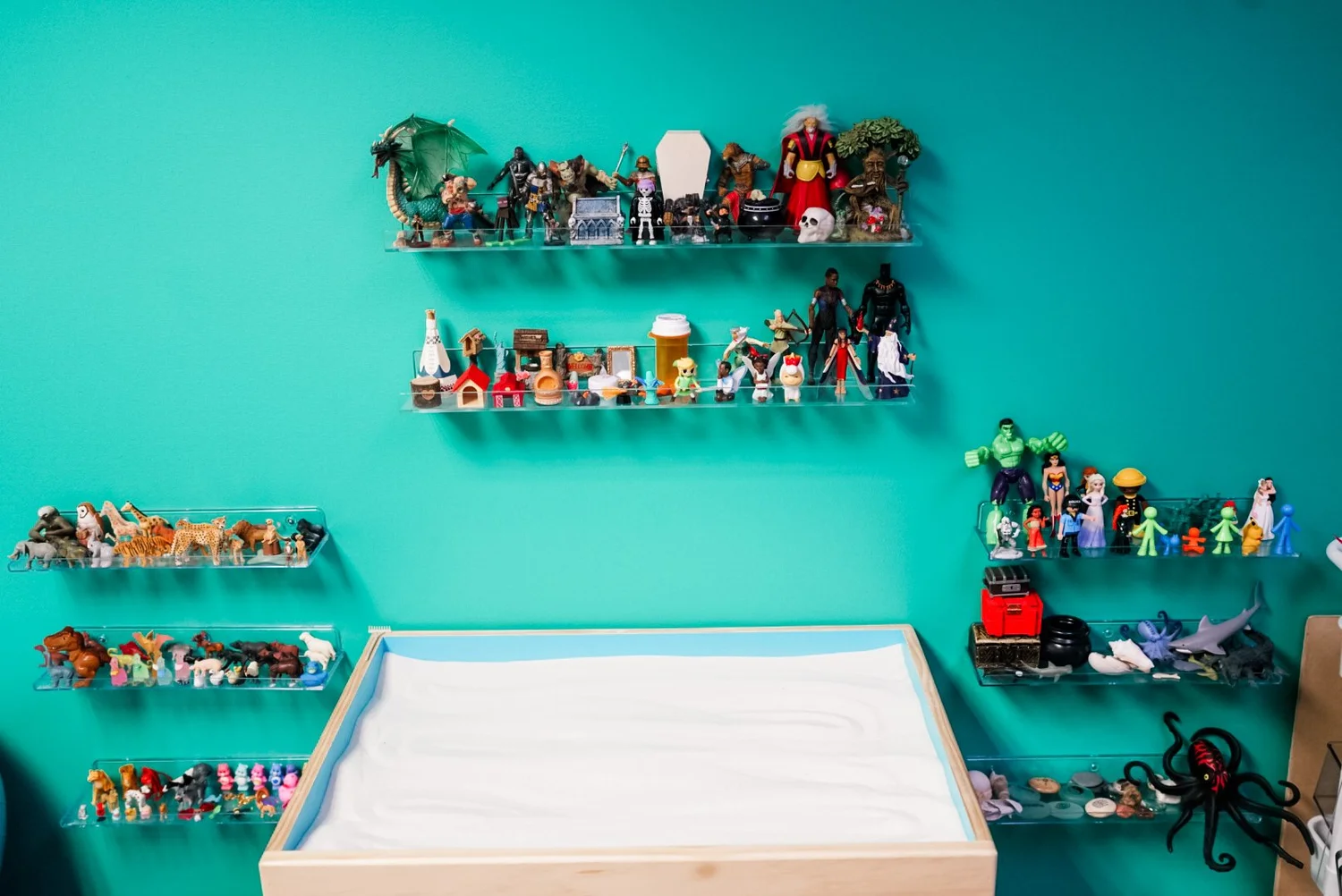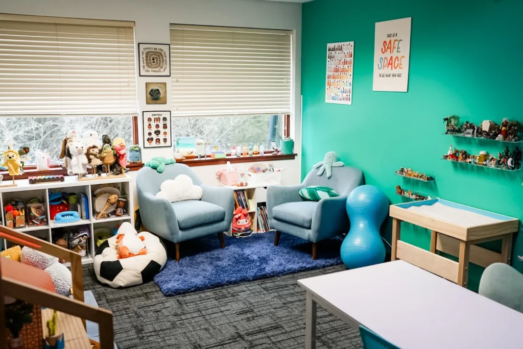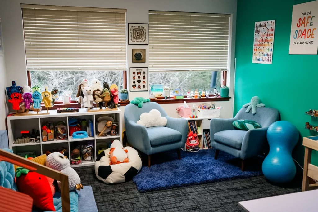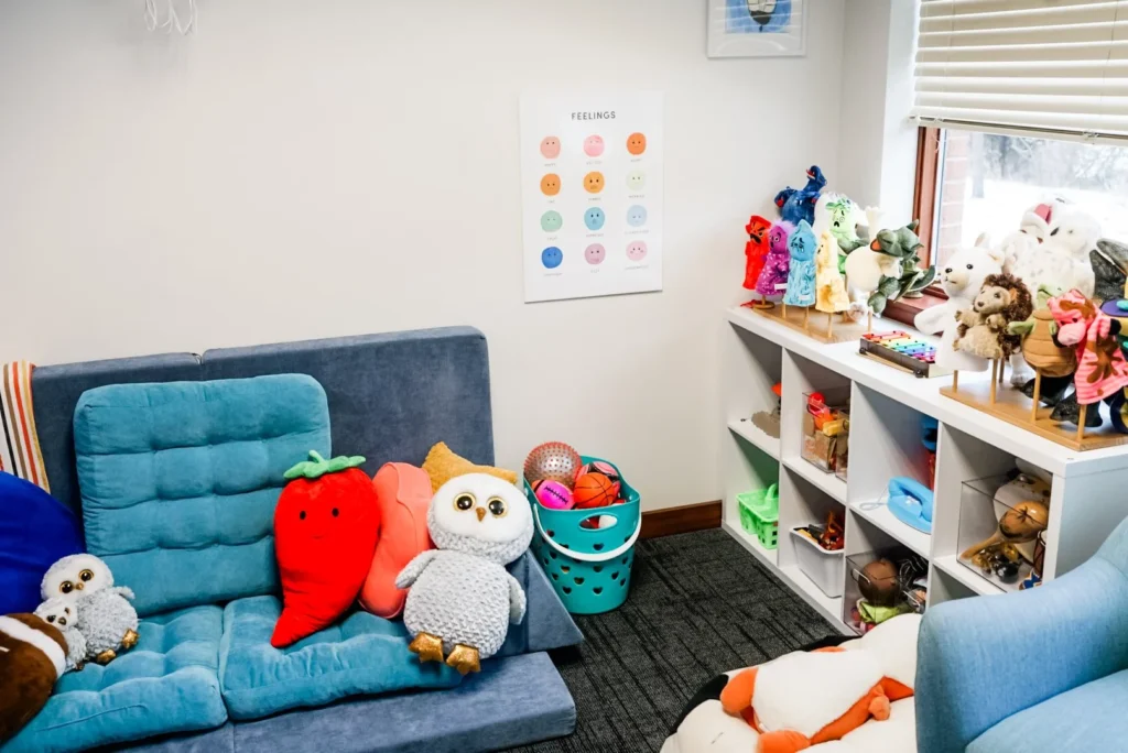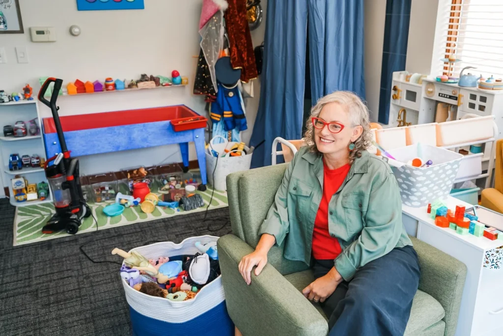 In my therapy room, I’ll meet you and your child where you are, considering your unique personalities and the needs and experiences that have shaped your family. I also love doing work with caregivers and can provide individual parenting sessions when appropriate. I use play, sand tray, movement and mindfulness and body-based interventions, nature, art, puppetry, and other expressive arts to meet folks where they are!